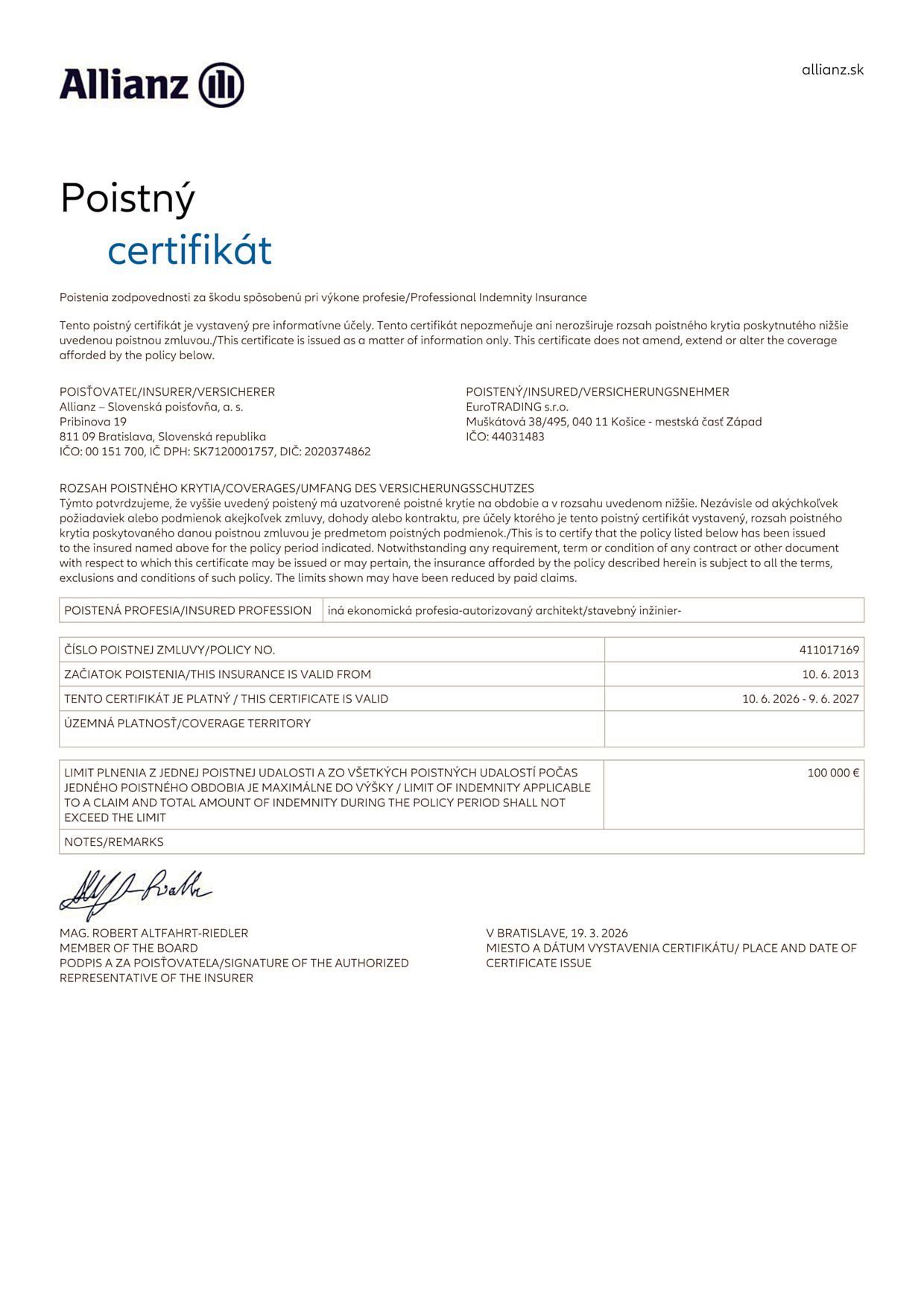 Vážení zakazníci, týmto si Vám dovoľujeme poskytnúť informácie o poistení a hlavne o tom, že sme nikdy nemuseli toto poistenie použiť.